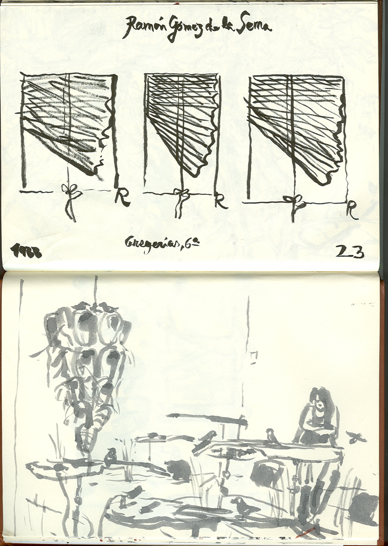 ya tenía ganas de ir, pero el dibujo de Amparo , en el blog cercano, de la greguería 6ª de Ramón Gómez de la Serna me ha motivado más aún y he tratado de emularla.