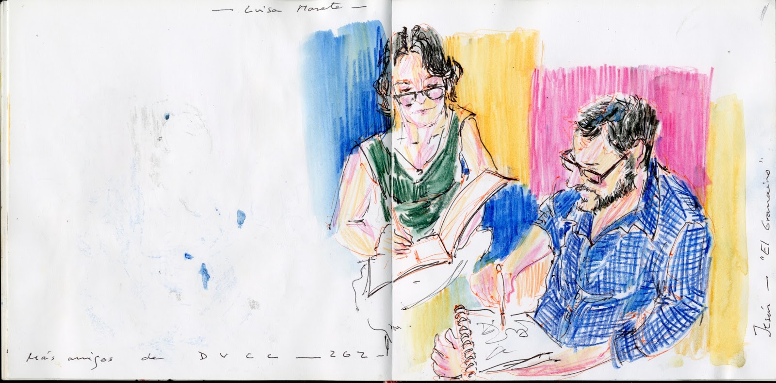 Dibujar dibujo, en Zaragoza estamos en un sin vivir los de De vuelta con el cuaderno, y con el tema del curso, de la música, pues para qué queremos más:... Conciertos, fiestas, marchas...